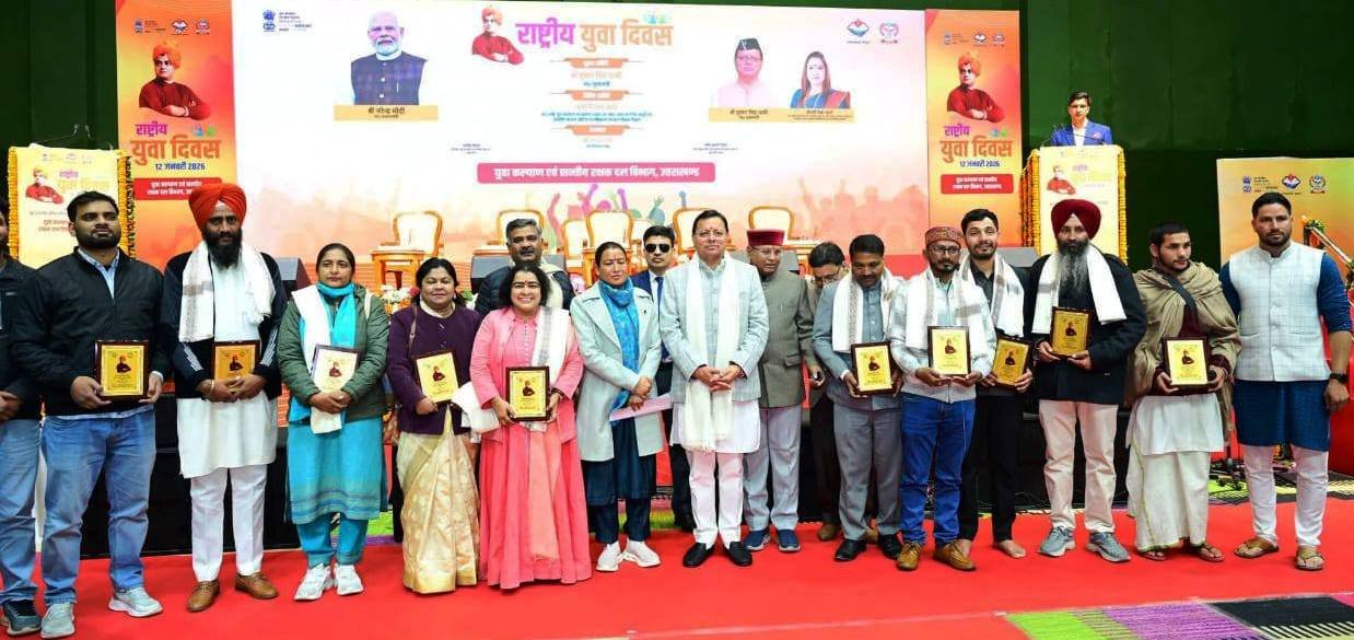 देहरादून।राष्ट्रीय युवा दिवस के अवसर पर परेड ग्राउंड देहरादून में आयोजित राज्यस्तरीय कार्यक्रम में मुख्यमंत्री पुष्कर सिंह धामी ने विभिन्न क्षेत्रों में उत्कृष्ट कार्य करने वाले महिला मंगल दलों और युवक मंगल दलों को सम्मानित किया। मुख्यमंत्री ने प्रथम, द्वितीय और तृतीय स्थान प्राप्त करने वाले मंगल दलों को क्रमशः एक लाख रुपये, 50 हजार रुपये और 25 हजार रुपये की धनराशि प्रदान कर उनका उत्साहवर्धन किया।