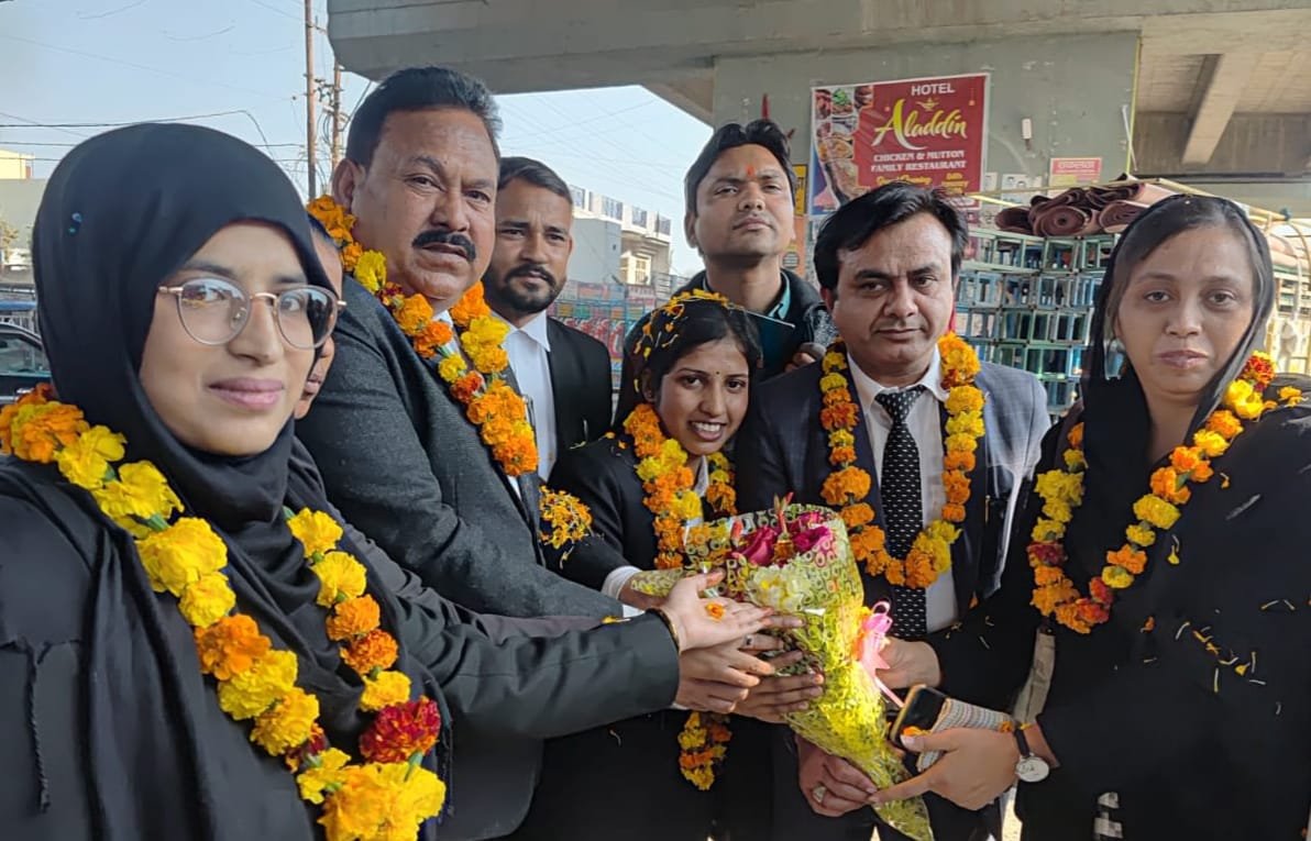 रुड़की।देवबंद के बाल्मिकी बस्ती की युवा अधिवक्ता मेघा तेश्वर के उत्तर प्रदेश बार काउंसिल में पंजीकृत होने पर उनका सम्मान किया गया।इस अवसर पर सीनियर अधिवक्ता जमाल साबरी,अधिवक्ताओंव युवा अधिवक्ताओं ने अपने विचार रखे एवं मेघा तेश्वर के उज्जवल भविष्य की कामना की।जमाल साबरी अधिवक्ता,पूर्व संयुक्त सचिव सहारनपुर अधिवक्ता एसोसिएशन,जिला अध्यक्ष राष्ट्रीय संयुक्त अधिवक्ता मंच ने कहा देवबंद में बाल्मीकि समाज की बेटी ने परिवार के आशीर्वाद से अपनी मेहनत और लगन से कानून की पढ़ाई को पूरा किया।उत्तर प्रदेश बार काउंसिल में पंजीकरण करने बाद वे एडवोकेट बन गयी है। आशा व्यक्त करते हुए कहा कि वे अपने समाज व सर्व समाज को लिए कार्य करते हुए समाज को न्याय दिलाने में महत्वपूर्ण भूमिका निभाएगी।राम किशन सैनी अधिवक्ता,डॉक्टर शाजिया नाज एडवोकेट व अब्दुल रहमान अधिवक्ता ने कहा कि मेघा का अधिवक्ता बनना हमारे लिए किए गर्व की बात है और जीवन मे ऐसे ही बुलंदियों को छुयें हम उनके उज्जवल भविष्य की कामना करते हैं।इस मौके पर रूमन लाम्बा अधिवक्ता,अंकित शुक्ला अधिवक्ता,जुनैद अधिवक्ता,साकिब अधिवक्ता,सुमैया अधिवक्ता एवं समाज के जिम्मेदार व्यक्तियों ने बधाई देते हुए फुल-मालाओं से भव्य स्वागत किया।