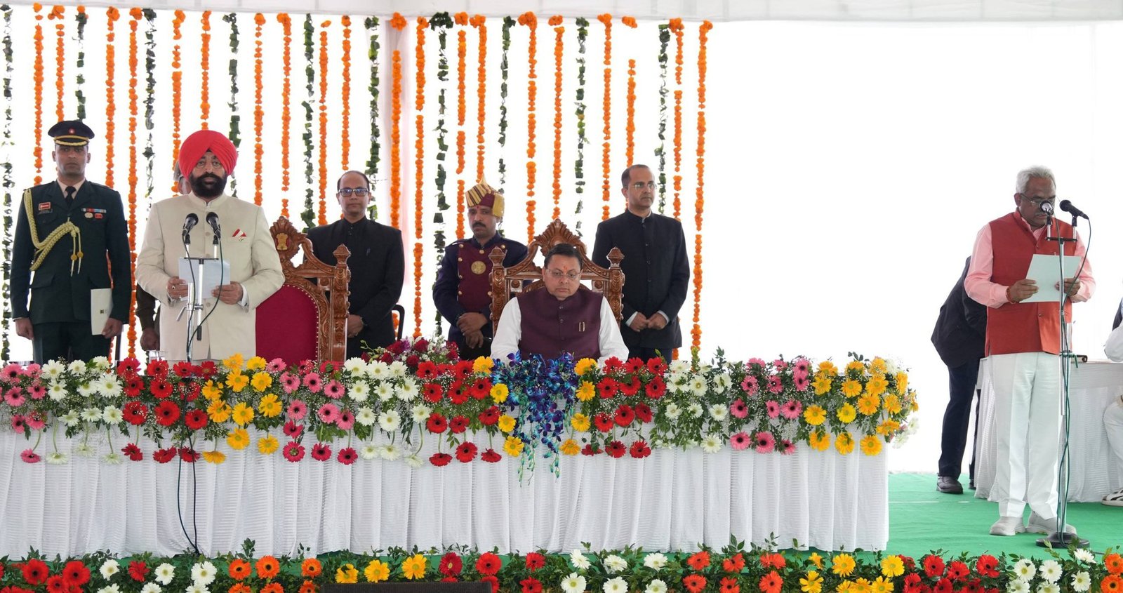 समारोह में विधायक खजान दास, मदन कौशिक, भरत सिंह चौधरी, प्रदीप बत्रा और राम सिंह कैड़ा को मंत्री पद की शपथ दिलाई गई। शपथ लेते ही सभी मंत्रियों ने राज्य के विकास, पारदर्शिता और जनसेवा के प्रति अपनी प्रतिबद्धता जताई।