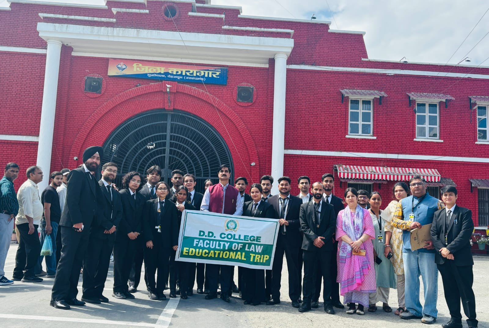 देहरादून- लॉ छात्र-छात्राओ और फैकल्टी मेम्बरस ने आज कालेज प्रधानाचार्य डाॅ प्रवीण कुमार राठी के नेतृत्व मे सुद्धोवाला स्थित, जिला कारागार, देहरादून का शैक्षिक भ्रमण किया। जेलर श्री पवन कुमार कोठारी द्वारा विद्यार्थीयो को जेल प्रशासन की बारीकियो से रुबरू कराया गया एवं कैदियो के लिये चलाए जा रहे विभिन्न सुधार कार्यक्रमों की जानकारी प्रदान की गई। साथ ही उन्होंने विधि छात्र-छात्राओ को भविष्य मे एक अच्छा जज एवं अधिवक्ता बनने की शुभकामनये दी।