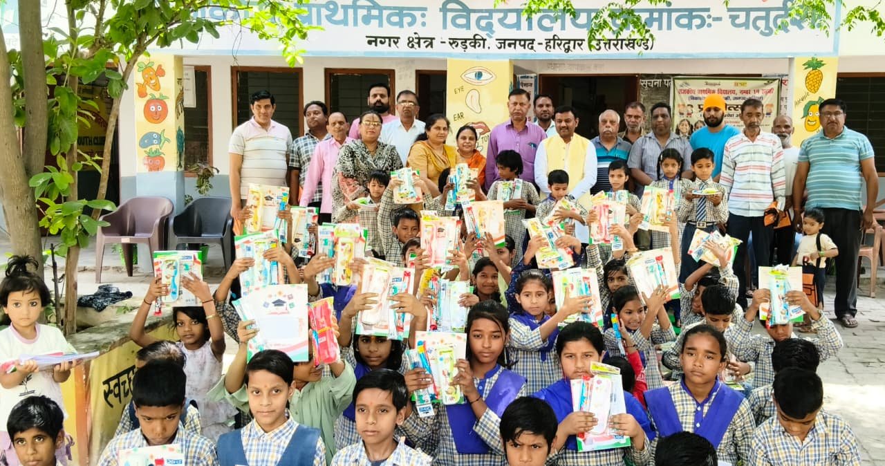 रुड़की।राजकीय प्राथमिक विद्यालय नंबर-14 में बच्चों को पाठ्य सामग्री वितरित करते हुए पूर्व मेयर गौरव गोयल ने कहा कि शिक्षा से बच्चों के जीवन में रोशनी आती है,जिससे पूरा परिवार जगमगा उठता है।उन्होंने कहा कि आज ही जो हाई स्कूल का रिजल्ट आया है उसमें छात्राओं और छात्रों ने जिस लगन तथा मेहनत के साथ अपने परिवार का नाम रोशन किया,उससे शिक्षा के महत्व का अंदाजा होता है।उन्होंने बालक व बालिकाओं से कहा कि उनकी उच्च शिक्षा केवल परिवार के लिए नहीं,बल्कि देश के लिए भी उपयोगी और सहायक सिद्ध रहती है,इसलिए राष्ट्र निर्माण में सेवा भावना के साथ शिक्षा ग्रहण करें।प्रधानाध्यापक रविंद्र कुमार ने कहा कि पूर्व मेयर गौरव गोयल द्वारा पिछले अनेकों वर्षों से विद्यालयों में बच्चों को जो निशुल्क पाठन सामग्री उपलब्ध कराई जाती है,उससे न केवल बच्चों में उत्साह बढ़ता है,बल्कि उनमें शिक्षा के प्रति भी रुचि बढ़ती है।उनका यह प्रयास बहुत ही सराहनीय है।इस अवसर पर सहायक अध्यापक सुरेश पाल,श्रीमती सुनीता शर्मा,श्रीमती सरस्वती पुंडीर,श्रीमती अनीशा,संगीता,मानसी वर्मा,जगदीश गुप्ता,अनूप शर्मा,दीपक मौर्य,मनोज कुमार मौर्य,मुकेश कश्यप,अनिल वर्मा,मनोज नागवान,विवेक घई,सूबेदार नरेश बिरला,लखविंदर सिंह,संजय कुमार पेंटर,ब्रजभूषण धीमान तथा सुरेंद्र कुमार आदि प्रमुख रूप से मौजूद रहे।